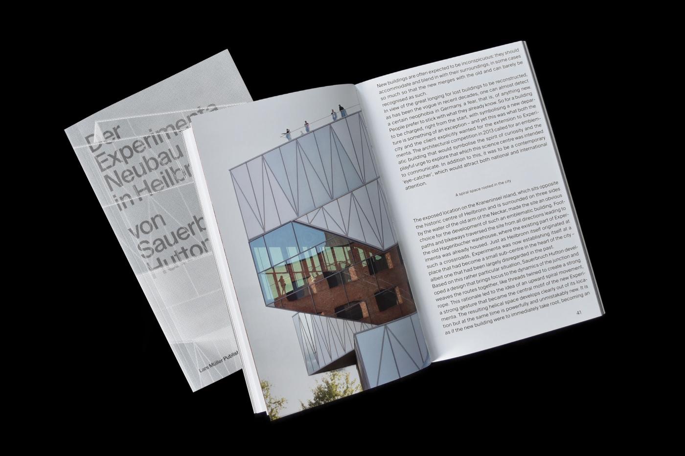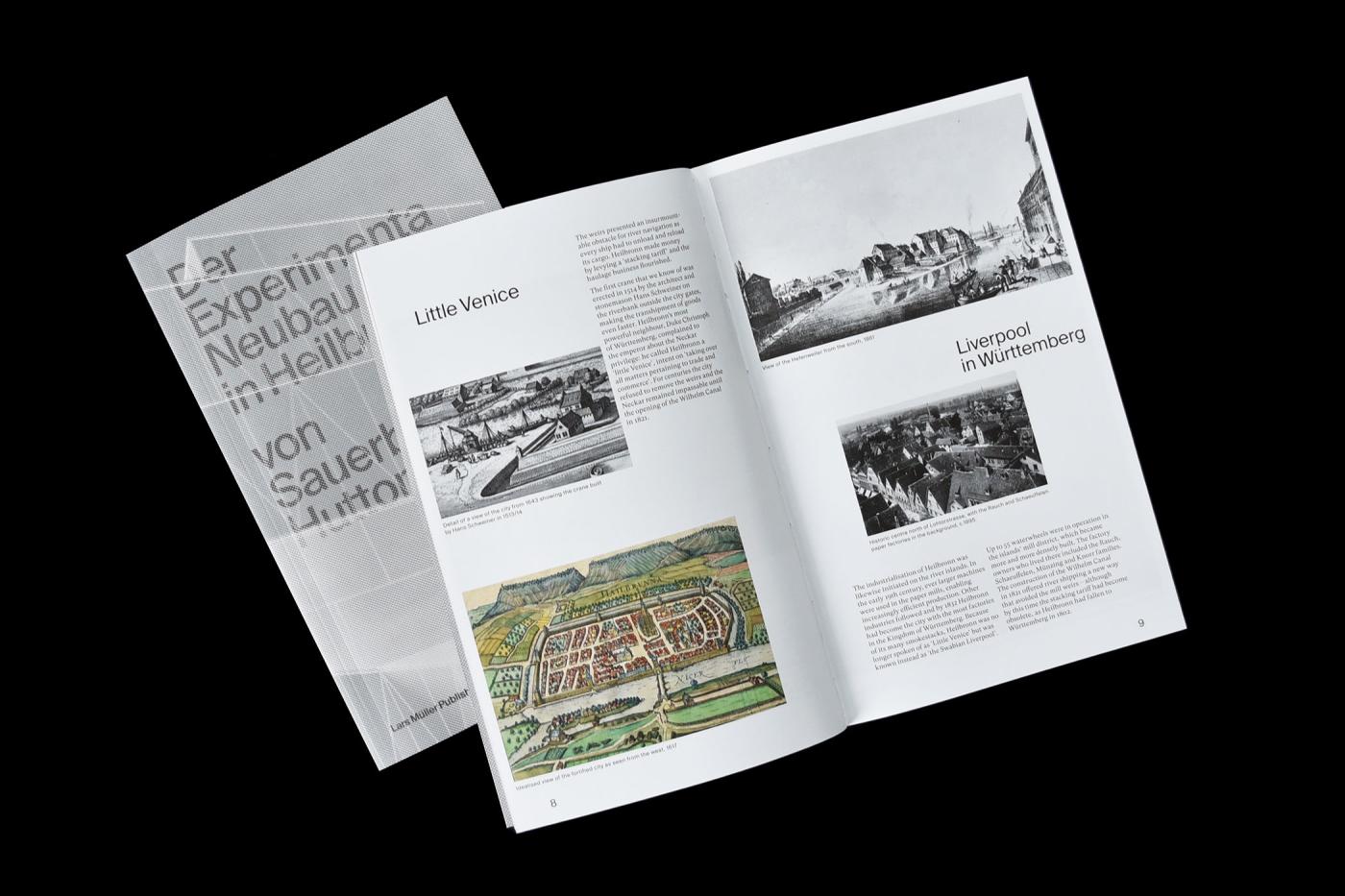 Ähnlich wie das Gebäude auf dem Weg entlang einer Raumspirale immer wieder neue Ausblicke nach innen und außen bietet, eröffnet auch diese Dokumentation mit jedem Kapitel inhaltlich wie gestalterisch neue Blickwinkel. In drei Texten unternimmt Autor Florian Heilmeyer zunächst einen Exkurs in die Stadtgeschichte Heilbronns, führt durch das Gebäude selbst und seine Entstehung, und verortet abschließend mit einem Essay über Spiralbauten den Entwurf in einem weiter gefassten architekturtheoretischen Kontext.