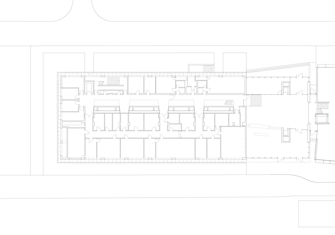Der Laborteil des Gebäude ist auf einer sehr rationalen Verteilungsstrategie für die Haustechnikmedien aufgebaut: In der Mittelzone befinden sich hoch installierte Bereiche und die horizontalen und vertikalen Hauptstränge, zur Fassade hin lässt die Dichte technischer