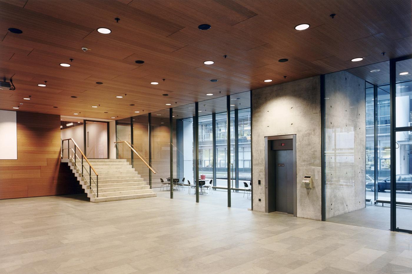 Das Gebäude besteht aus zwei Teilen: ein natürlich belüfteter Bürotrakt auf der Westseite und eine hochinstallierte Laborzone auf der Ostseite. Die beiden kommunizierenden Teile werden über ein dazwischen liegendes Atrium erschlossen, das Tageslicht in die Tiefe des Gebäudes führt. Als Konvektionsraum ermöglicht das Atrium die natürliche Querlüftung und nächtliche Kühlung der Räume im Büroteil des Gebäudes. Eine offene Treppe innerhalb des Atriums dient als direkte Verbindung zwischen den Ebenen.