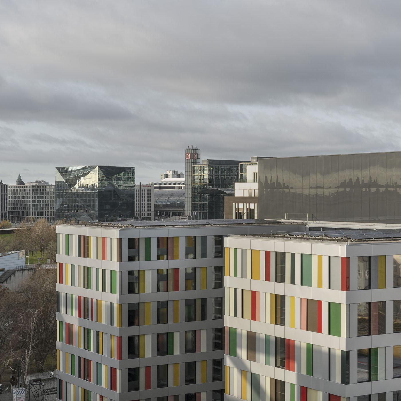 Dieser modulare Bürobau inmitten des Berliner Regierungsviertels wurde für den Deutschen Bundestag entwickelt. Der Baukörper reagiert auf sein komplexes Umfeld mit großer Einfachheit: Ein simpler H-Grundriss vermittelt zwischen der Kammstruktur des Marie-Elisabeth-Lüders-Haus und der Blockrandkante des angrenzenden Quartiers.