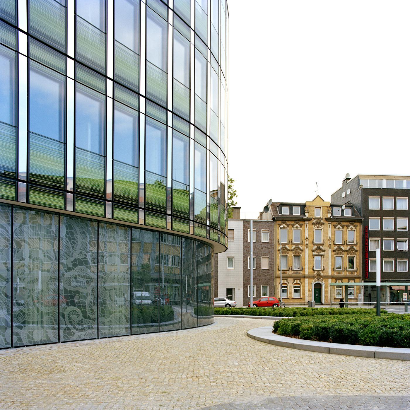 Der Strukturwandel des Ruhrgebiets vom Industrie- zum Dienstleistungszentrum ist in Oberhausen mit der Metamorphose einer nie komplettierten Blockstruktur zu einer durchgrünten Parkstadt verbunden. Diesen Paradigmenwechsel veranschaulicht beispielhaft die Erneuerung der Hauptverwaltung der Sparkasse im Stadtzentrum: Hier wird der Umbau und die Erweiterung einer bestehenden Kundenfiliale innerhalb einer Blockstruktur mit einem freistehenden Neubau verknüpft.
