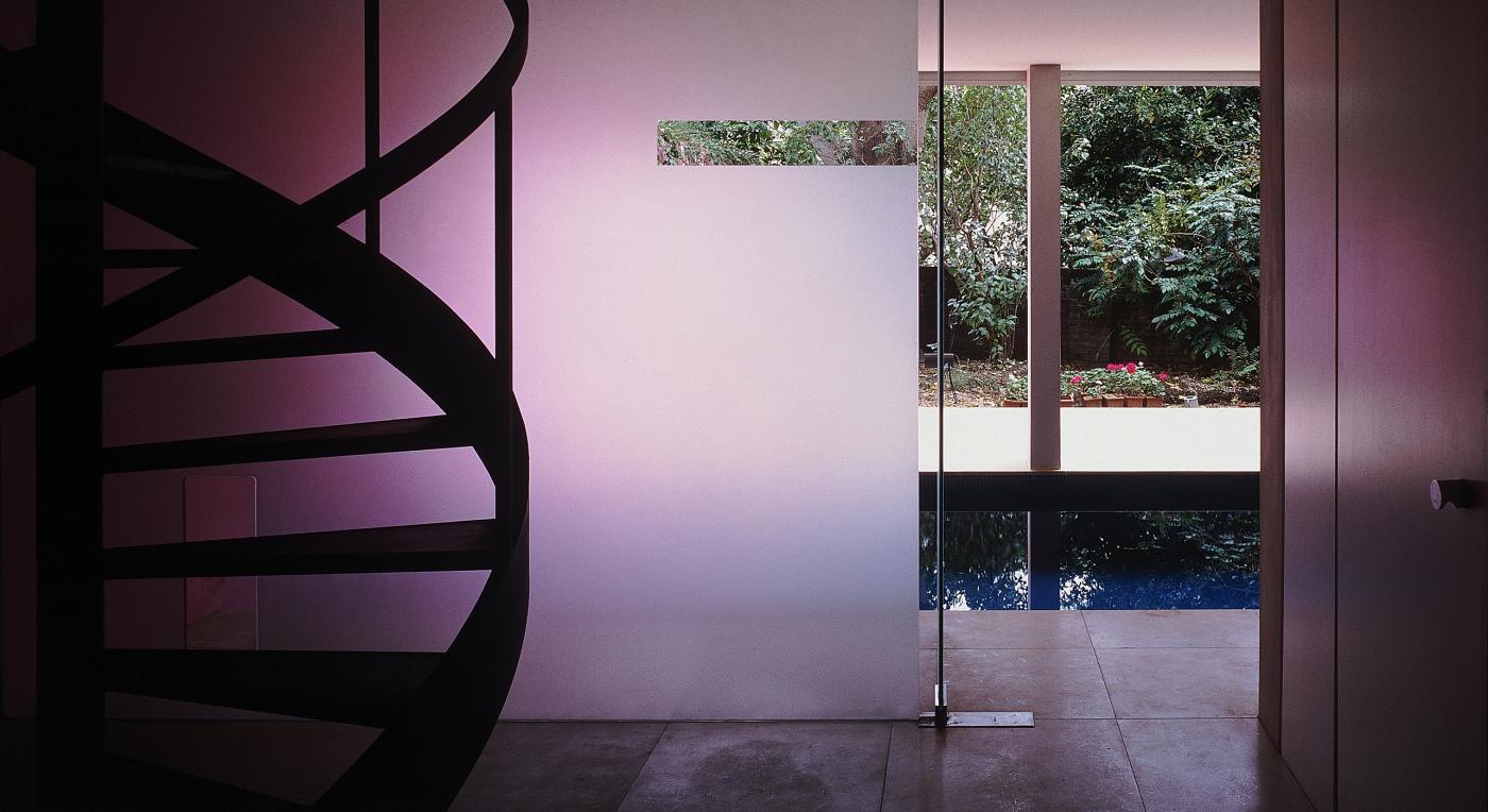 The spatial logic of this exceptional house in West London is that of a large-format inhabited painting. Its architecture creates a certain ambiguity between the physical reality of its built enclosure and the visual perception of its space. The intense colour compositions of the interior and the omnipresent lush garden outside create a spatial dialogue offering a varied and urbane experience of nature and architecture. To adapt this 1960s residence to the needs of its independent film-maker inhabitants, each floor was given its own distinctive atmosphere.