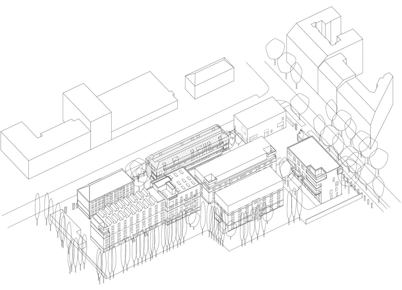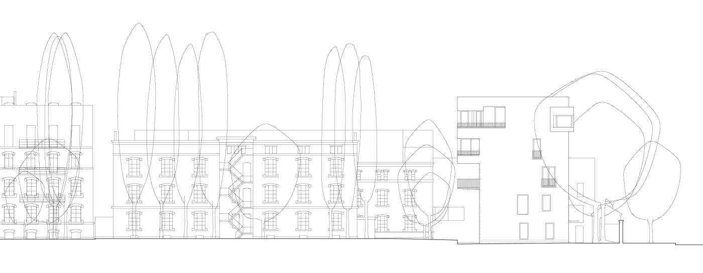 Haus 9 has adopted the high ceilings and generous windows from its historic neighbours, as well as the simple, repetitive structure with which they have accommodated a wide variety of uses over some 120 turbulent years. Its exterior massing is a response to the planning regulations that govern the development of the plot. Its interior layout, however – and the consequent façade variations – changes from floor to floor depending on the kind of living and working spaces preferred by individual members of the cohousing group.