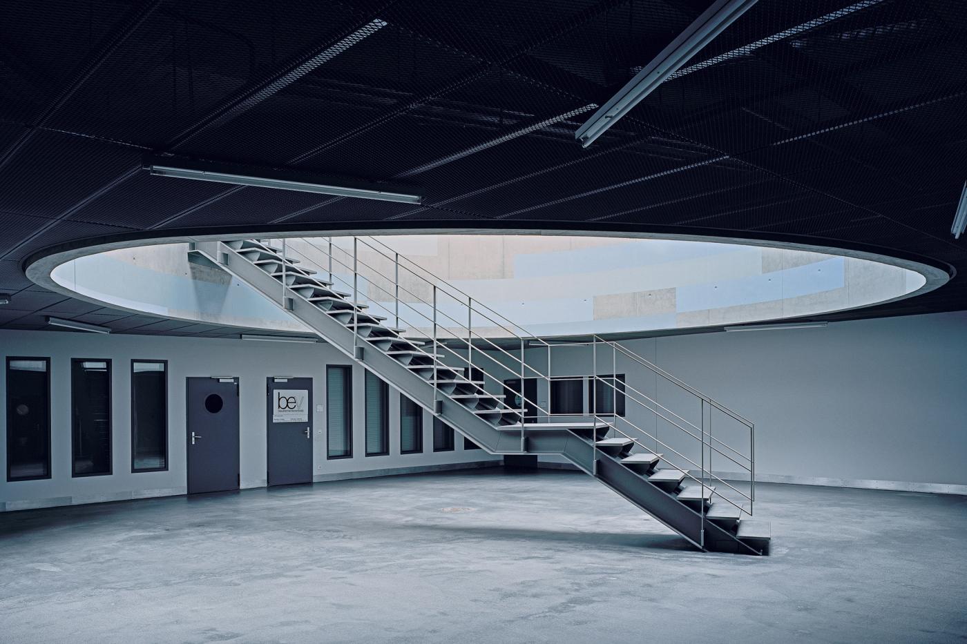 The urban and architectural ideas as conceived in the competition could only be realised in two of the four buildings: a three-story structure for laboratories, workshops and offices and a single-storey hall for large-scale experiments.