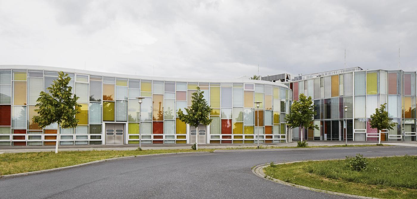 The colour treatment of the façades gives the building its special identity. A spectrum of 36 hues on both the loadbearing columns and the solar blinds unfolds on the undulating building skin.