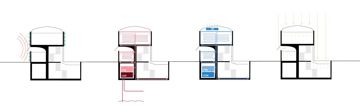 The exacting requirements for the stability of temperature, relative humidity and air quality in exhibition spaces and storage rooms of international standard can only be met by the installation of technical systems of a very high level. In order to keep costs as low as possible, an energy-saving strategy was developed together with the building services consultant. The building is mainly heated and cooled with the help of a groundwater heat pump, which is fed with groundwater – supplied at the very high temperatures prevailing in Munich’s museum quarter – that is then cooled in the process. Not only does this take advantage of an existing source of free energy, it also normalises the heat balance of the local groundwater.