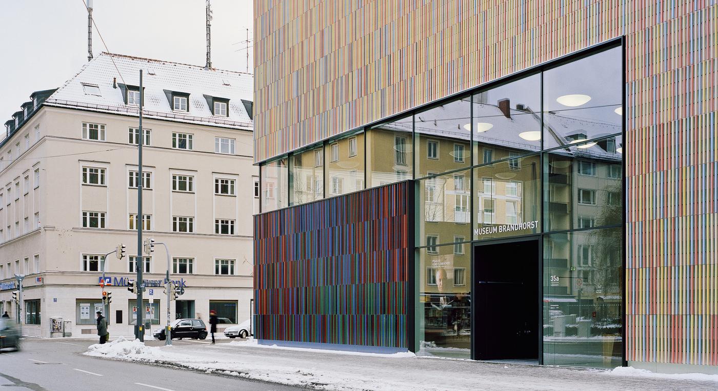 The Brandhorst Museum houses a substantial private collection of late 20th-century and contemporary art, predominantly paintings. The building consists of a long volume that lines the street and a taller one that marks the north-eastern corner of Munich’s museum quarter. These are both clad in a textured and polychromatically treated skin, whose gradations in hue and tone give the building the appearance of three simple interlocking volumes.